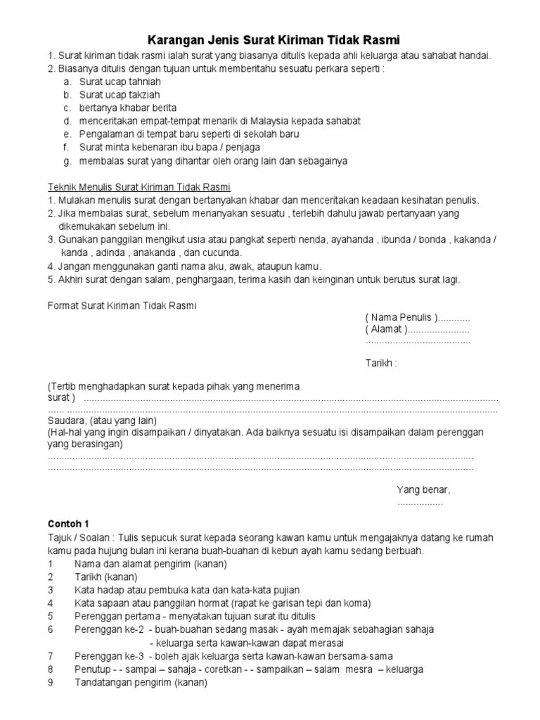 轻松攻略surat rasmi 和tidak rasmi genius education group facebook. Contoh karangan surat kiriman rasmi. Surat kiriman tidak rasmi adalah karangan berformat, dan sering dikeluar sebagai soalan di peperikasaan upsr, pt3, spm ataupun stpm. Contoh surat kiriman tidak rasmi spm have a graphic associated. Surat kiriman tidak rasmi adalah karangan berformat dan sering dikeluar sebagai .